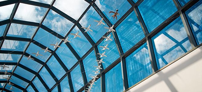 Здание представляет собой трубу длинной в 172 метра сделанную из пластин закаленного стекла.